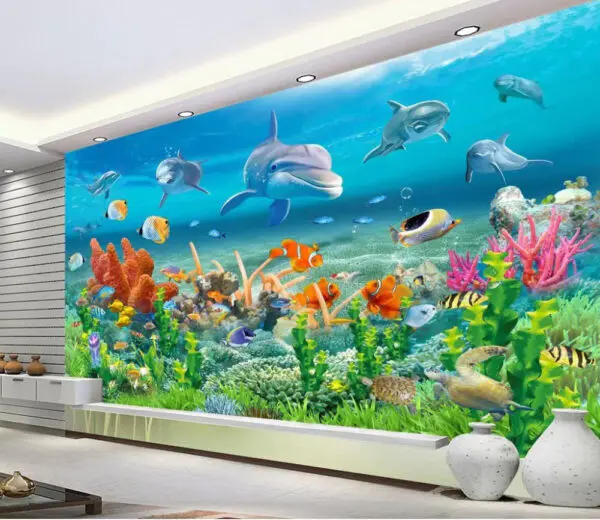 14.61 €8.77 €Ταπετσαρίες Ομάδα ψαριών και δελφινιών που κολυμπούν στον ωκεανό