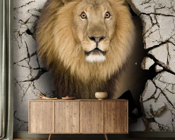 15.15 €8.33 €Ταπετσαρίες Το λιοντάρι περπατάει μέσα από έναν τοίχο με ρωγμές