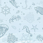 Ταπετσαρίες Γκρι φόντο με θαλάσσια πλάσματα