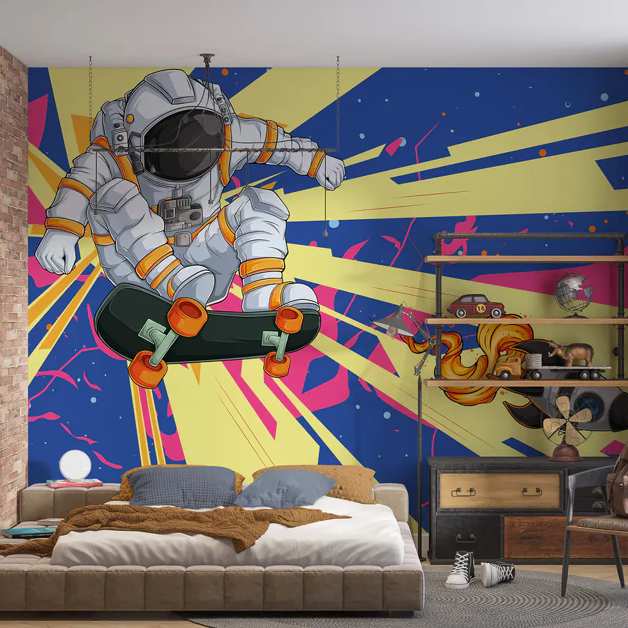 Ταπετσαρίες Ένας αστροναύτης που οδηγεί skateboard