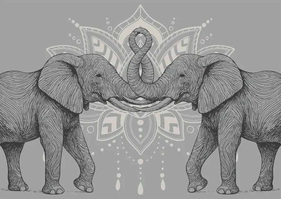 Ταπετσαρίες Δύο ελέφαντες με τους κορμούς τους να αγγίζουν ο ένας τον άλλον