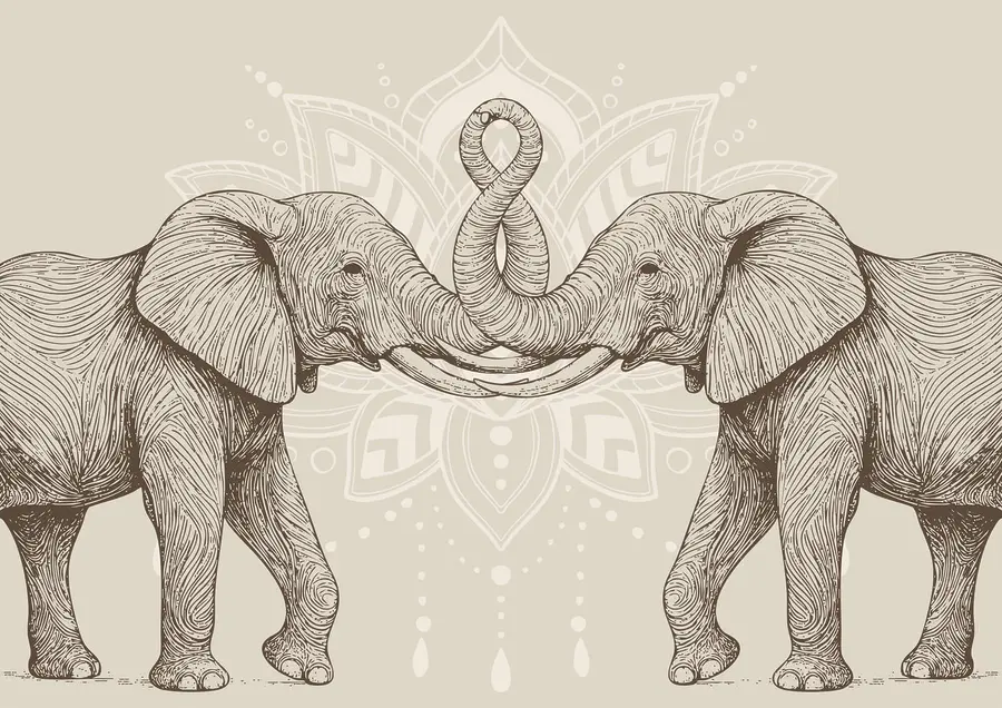 Ταπετσαρίες Δύο ελέφαντες με τους κορμούς τους κουλουριασμένους