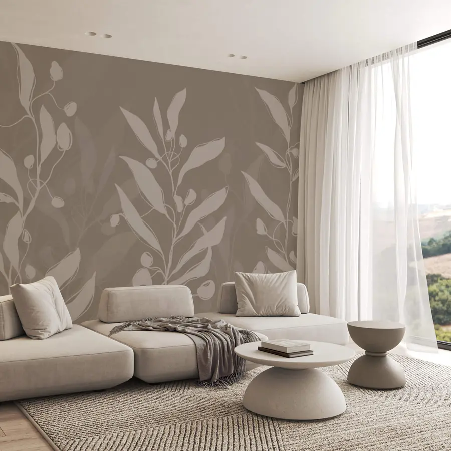 Ταπετσαρίες Απαλό βοτανικό σχέδιο σε ουδέτερο φόντο