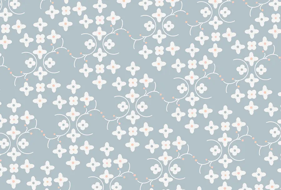 Ταπετσαρίες Μοτίβο από λευκά λουλούδια και ροζ κουκκίδες σε μπλε φόντο
