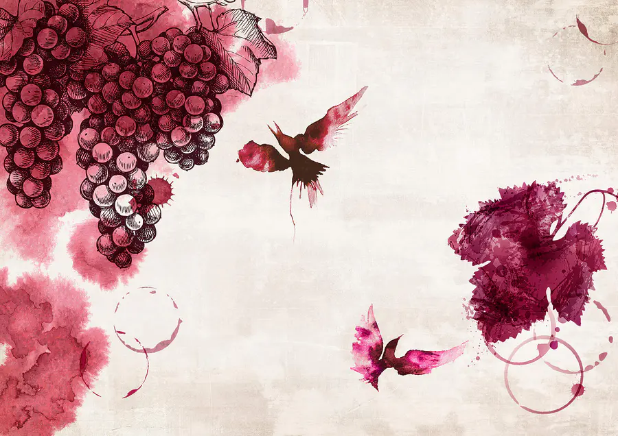 Ταπετσαρίες Ζωγραφική των πουλιών και των σταφυλιών