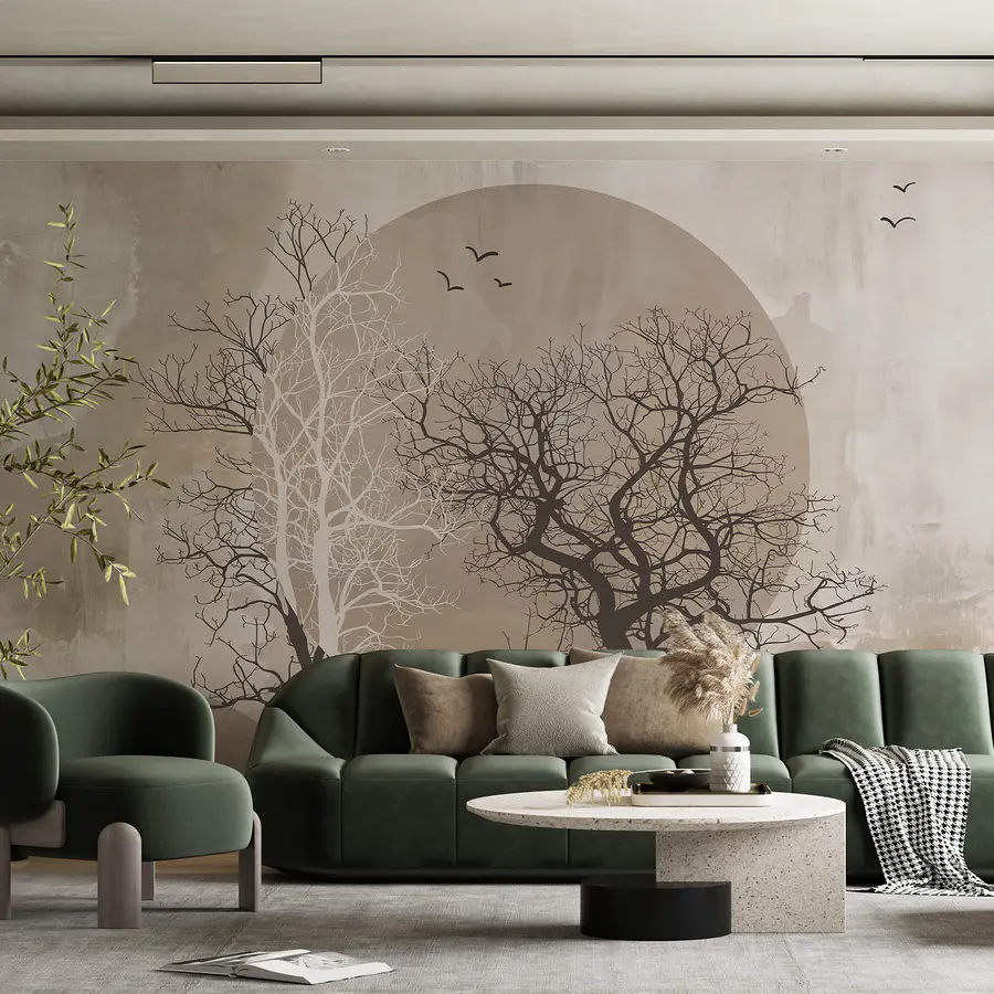 Ταπετσαρίες Ζωγραφική των δέντρων και του ήλιου