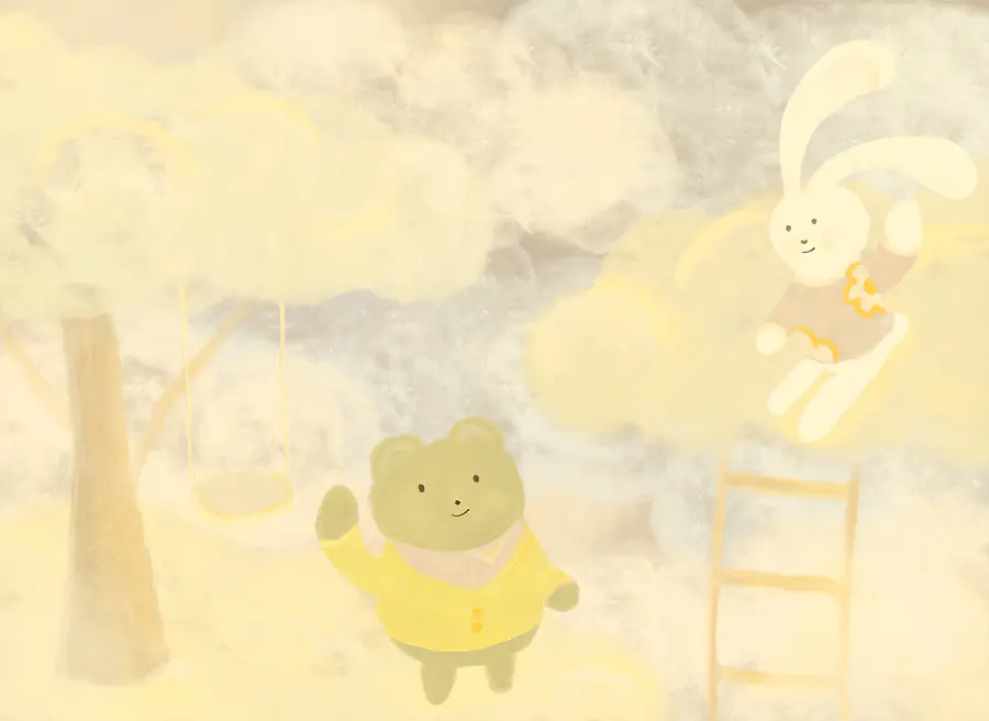 Ταπετσαρίες Καρτούν αρκούδα και λαγουδάκι στα σύννεφα