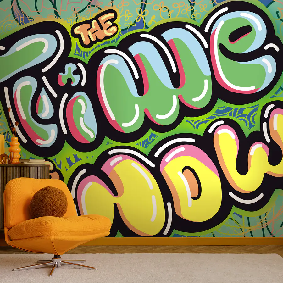 Ταπετσαρίες Πολύχρωμο γκράφιτι σε πράσινο φόντο