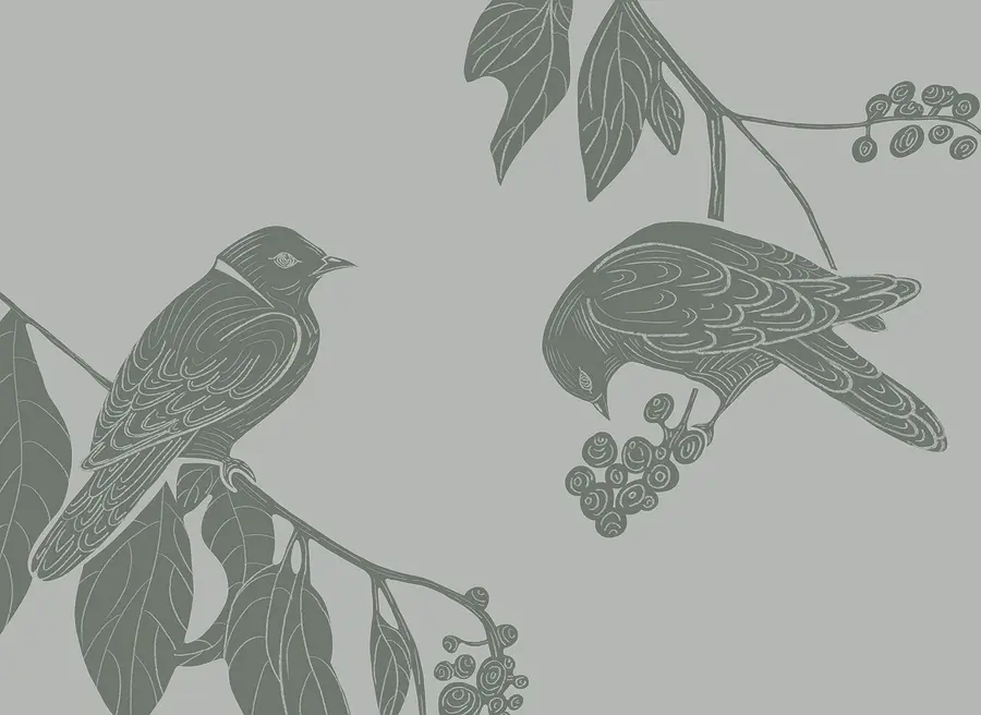 Ταπετσαρίες Πουλιά σε κλαδί με φύλλα