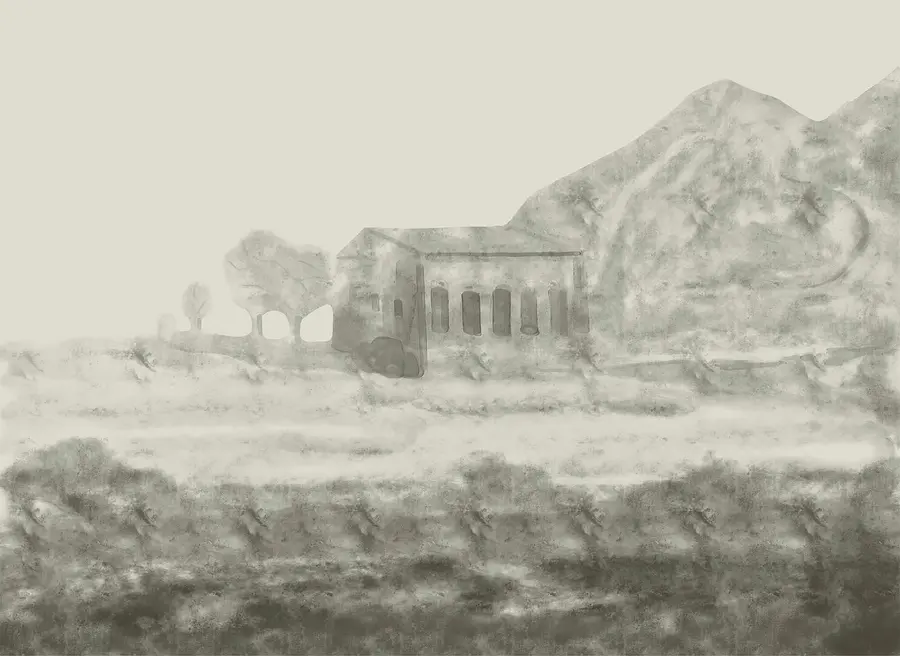 Ταπετσαρίες Σχέδιο ενός κτιρίου και ενός βουνού
