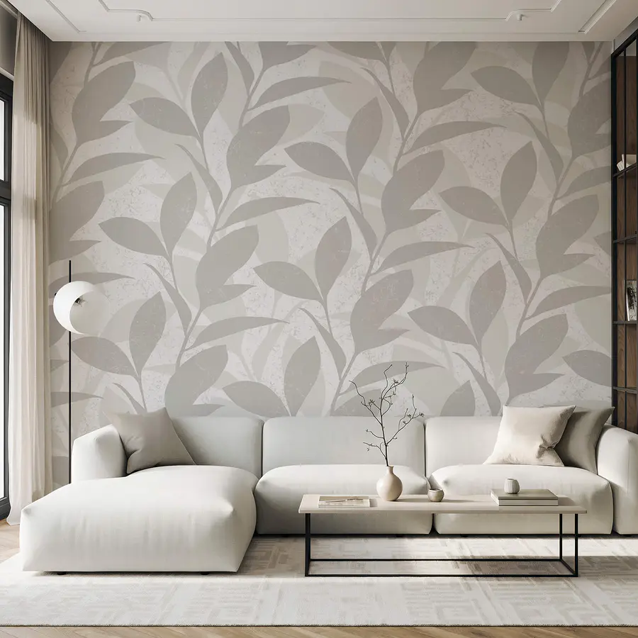 14.61 €8.77 €Ταπετσαρίες Λευκά φύλλα σε γκρίζα επιφάνεια