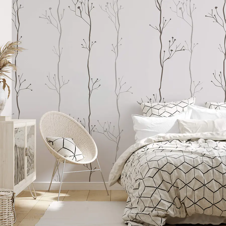 Ταπετσαρίες Μοτίβο κλαδιών σε λευκό φόντο