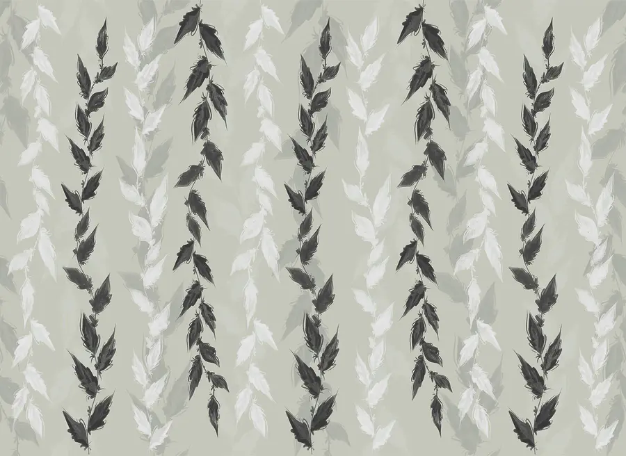 Ταπετσαρίες Μαύρα και άσπρα φύλλα σε γκρι φόντο