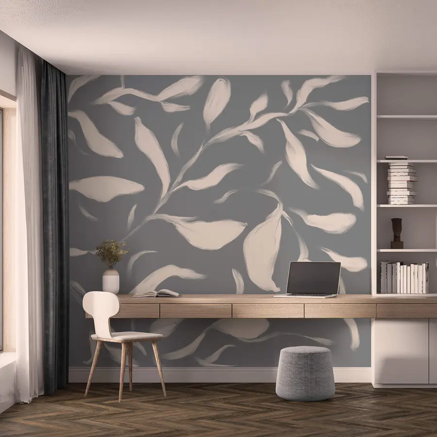 15.15 €8.33 €Ταπετσαρίες Λευκά φύλλα σε γκρίζα επιφάνεια