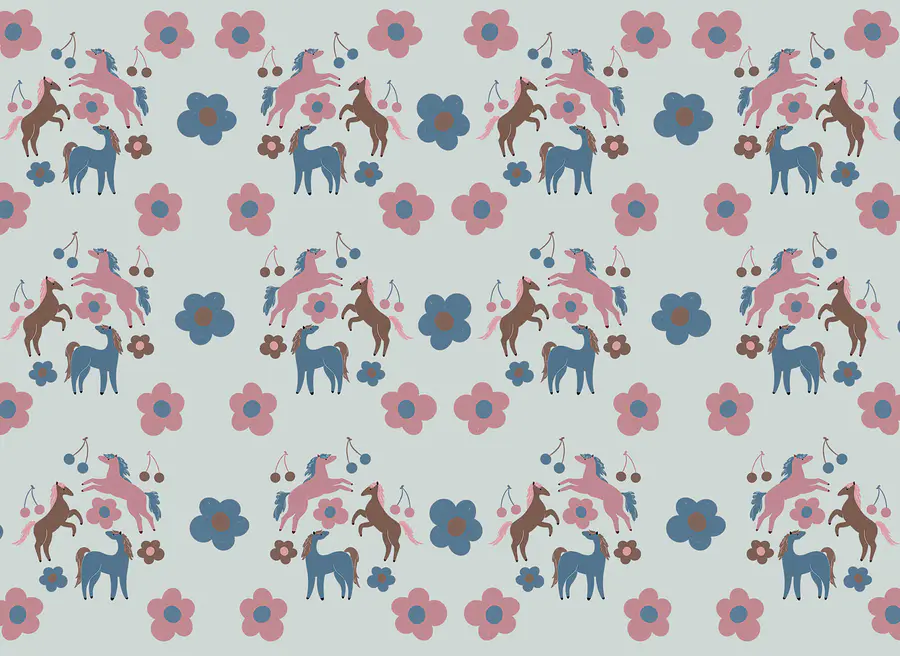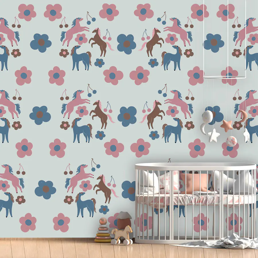 Ταπετσαρίες Μοτίβο με άλογα και λουλούδια