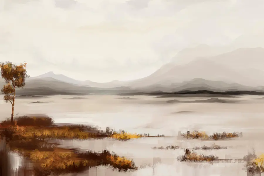 Ταπετσαρίες Τοπίο με λίμνη και βουνά στο βάθος
