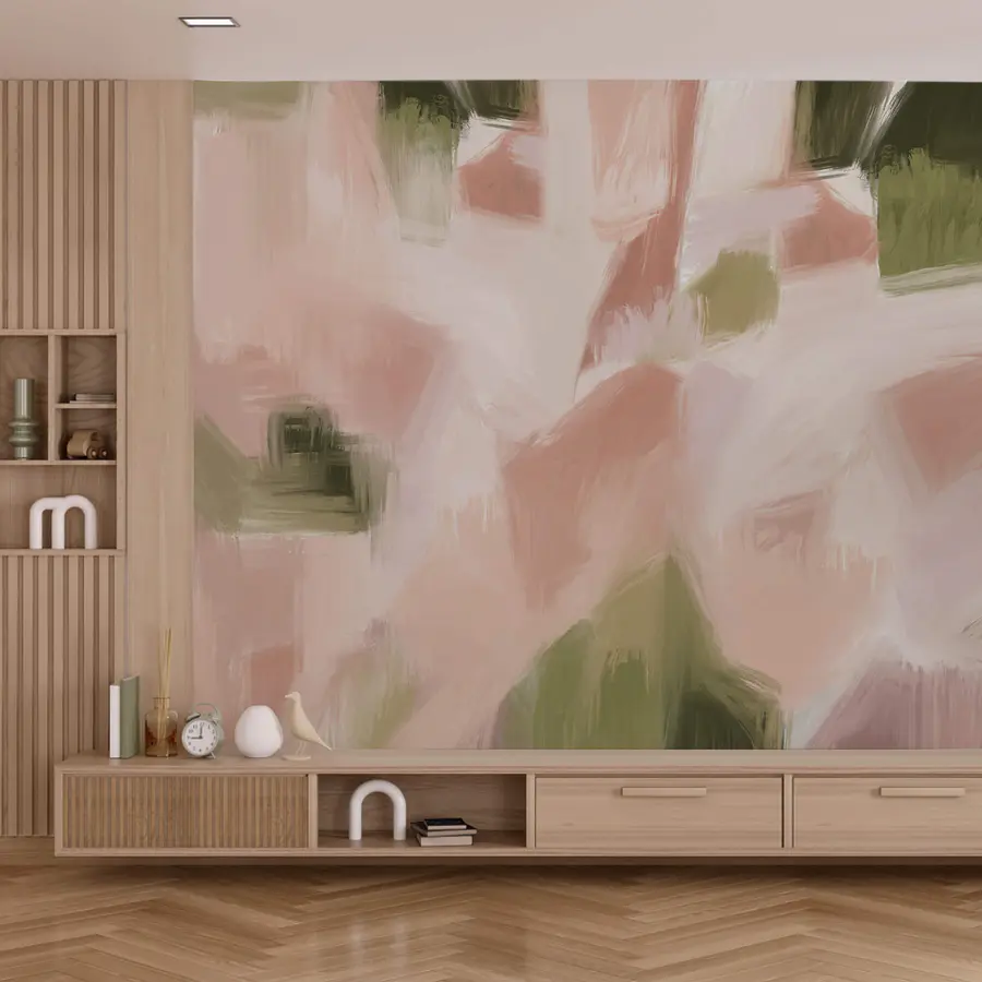 Ταπετσαρίες Πίνακας με ροζ και πράσινο φόντο
