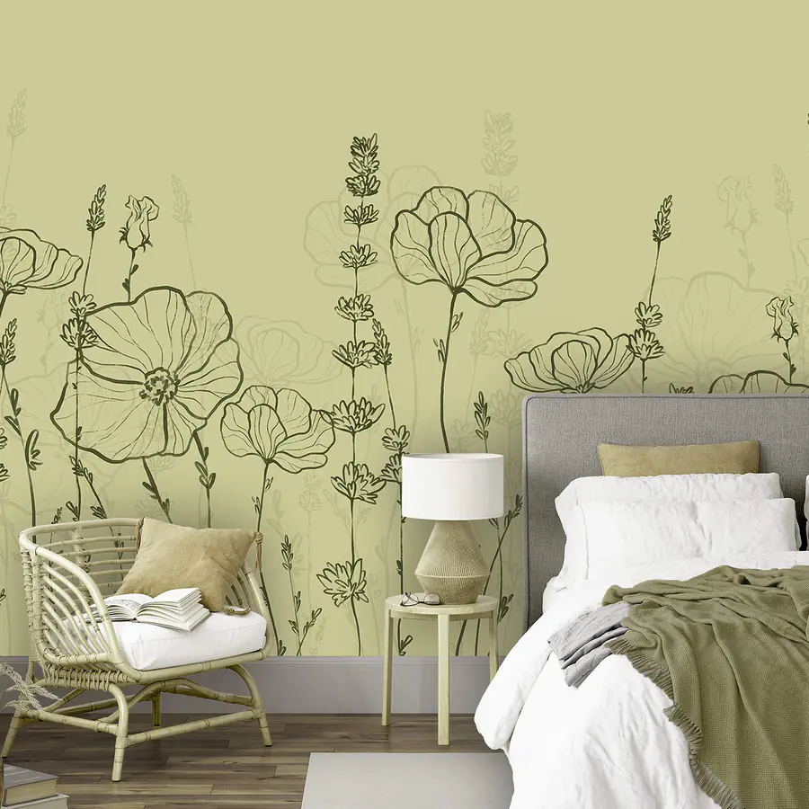 Ταπετσαρίες Σχέδιο λουλουδιών με απλές γραμμές