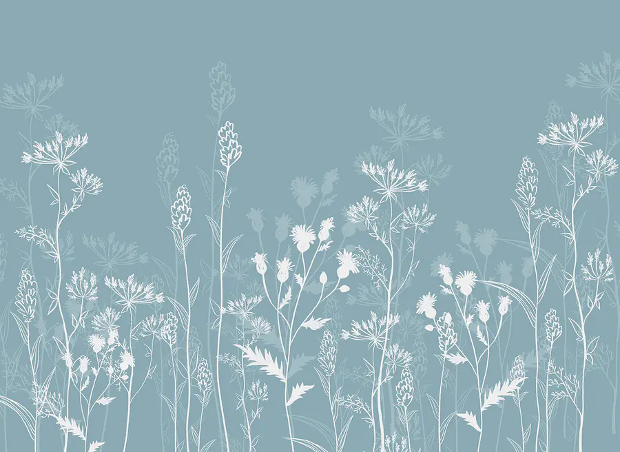 Ταπετσαρίες Λευκά λουλούδια σε μπλε φόντο