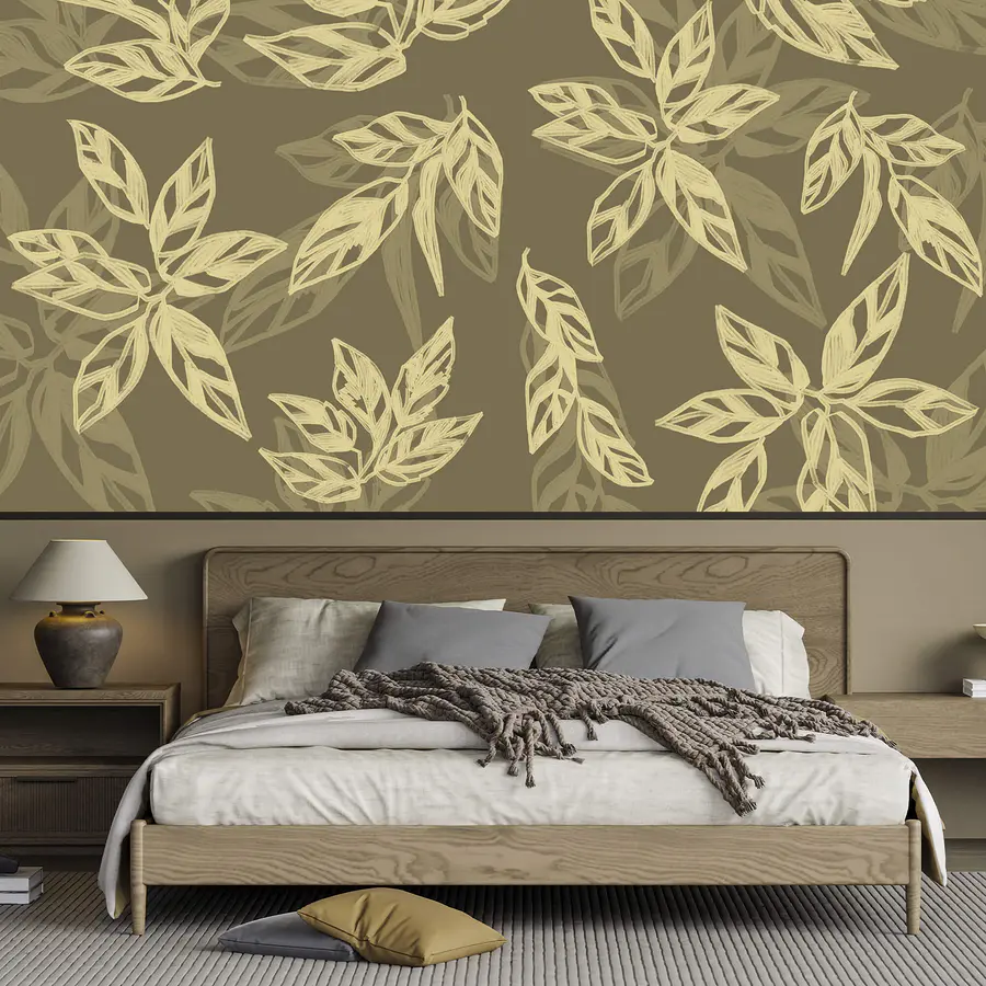 Ταπετσαρίες Μοτίβο φύλλων σε καφέ φόντο
