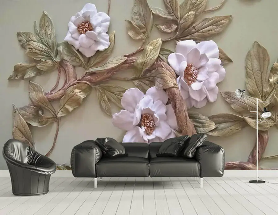 Ταπετσαρίες Διακόσμηση τοίχου με λουλούδια και φύλλα