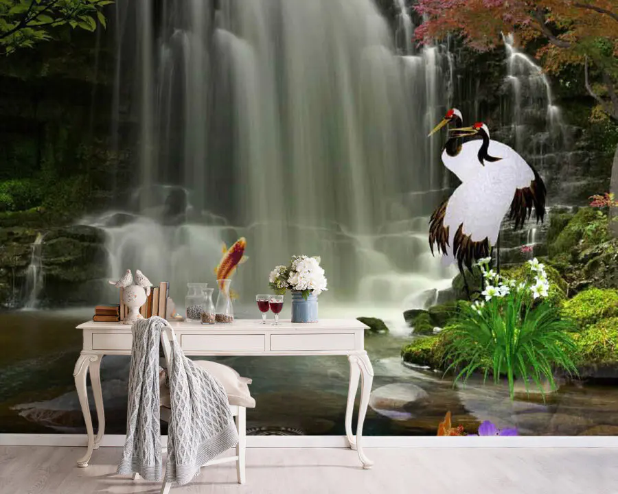 Ταπετσαρίες Καταρράκτης με πουλιά και ψάρια