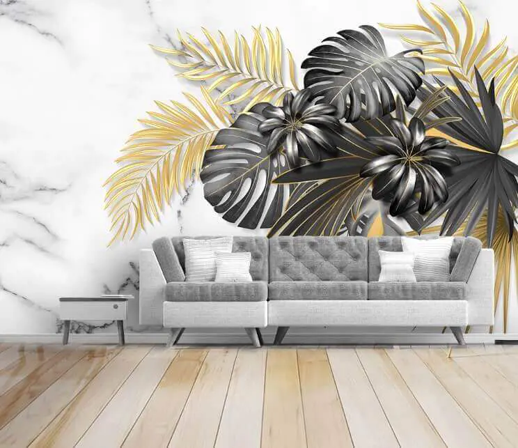 Ταπετσαρίες Κομψό φύλλωμα σε μαρμάρινο φόντο