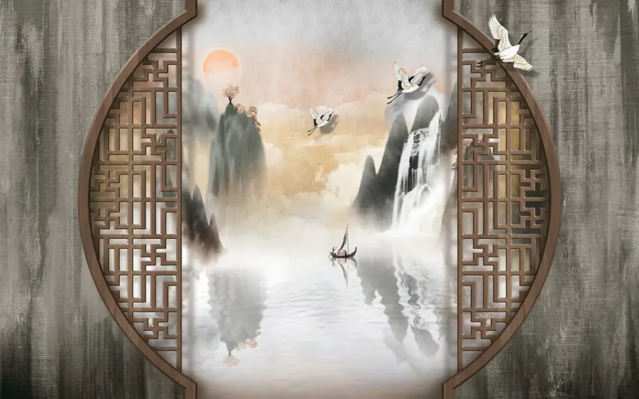 13.86 €8.32 €Ταπετσαρίες Ζωγραφική ενός τοπίου με γερανούς που πετούν πάνω από ένα κτίριο