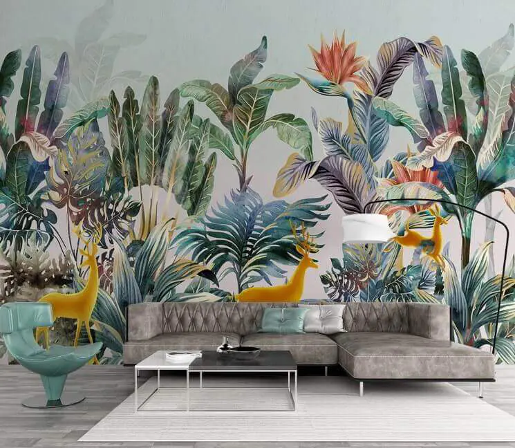 Μεταμορφώστε το χώρο σας με αυτή τη ζωντανή τοιχογραφία τοίχου με ένα ζωηρό μείγμα φυτών και παιχνιδιάρικα ελάφια. Είναι σαν να μπαίνετε σε ένα ονειρεμένο δάσος, με πλούσια πράσινα και χρωματικές πινελιές που θα μπορούσαν να κάνουν τον καθένα να νιώσει λίγο πιο ζωντανός. Φανταστείτε να πίνετε τον καφέ σας και να αισθάνεστε σαν να έχετε αποδράσει σε ένα τροπικό καταφύγιο, ακόμη και αν είναι μόνο στο σαλόνι σας. Κάθε στοιχείο μοιάζει να λέει μια ιστορία, προσκαλώντας την αίσθηση της περιπέτειας ή ένα άνετο απόγευμα που περνάτε ονειροπολώντας. Είτε πρόκειται για ένα παιδικό δωμάτιο είτε για ένα ιδιόρρυθμο γραφείο, αυτή η τοιχογραφία φέρνει τη γοητεία της φύσης στο εσωτερικό. Δεν είναι απλώς διακόσμηση - είναι μια εμπειρία που σας τυλίγει στη ζεστασιά και το χρώμα, προσφέροντας ένα γλυκό μικρό καταφύγιο από την καθημερινή φασαρία.