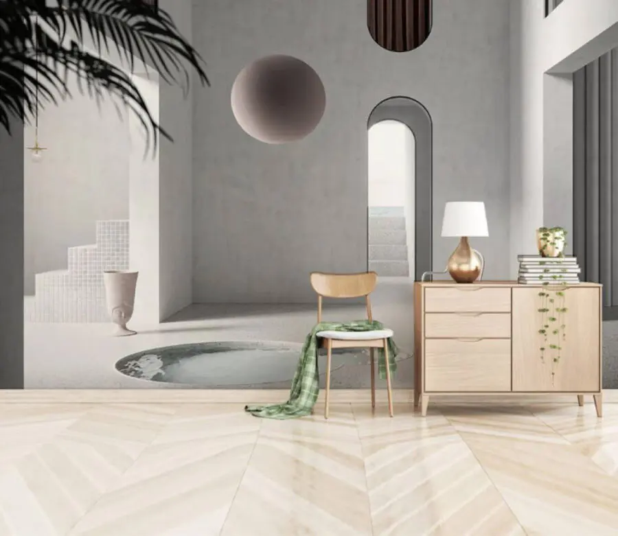 Μεταμορφώστε οποιονδήποτε χώρο σε ένα γαλήνιο καταφύγιο με αυτή την εκπληκτική τοιχογραφία "Δωμάτιο με πισίνα και καρέκλα". Φανταστείτε να μπαίνετε σε μια ονειρική απόδραση, όπου το φως χορεύει μέσα από τοξωτές πόρτες και μια άνετη καρέκλα περιμένει τις απογευματινές σας ονειροπολήσεις. Οι απαλές αποχρώσεις και ο μινιμαλιστικός σχεδιασμός προσκαλούν μια ηρεμιστική αύρα, ιδανική για να χαλαρώσετε μετά από μια κουραστική μέρα. Φανταστείτε το: ένα απαλό αεράκι να ανεμίζει καθώς πίνετε τσάι, νιώθοντας σαν να έχετε ξεγλιστρήσει σε ένα κομψό σπίτι διακοπών. Δεν είναι απλώς διακόσμηση, είναι μια ατμόσφαιρα που ψιθυρίζει: "Χαλαρώστε, το αξίζετε".
