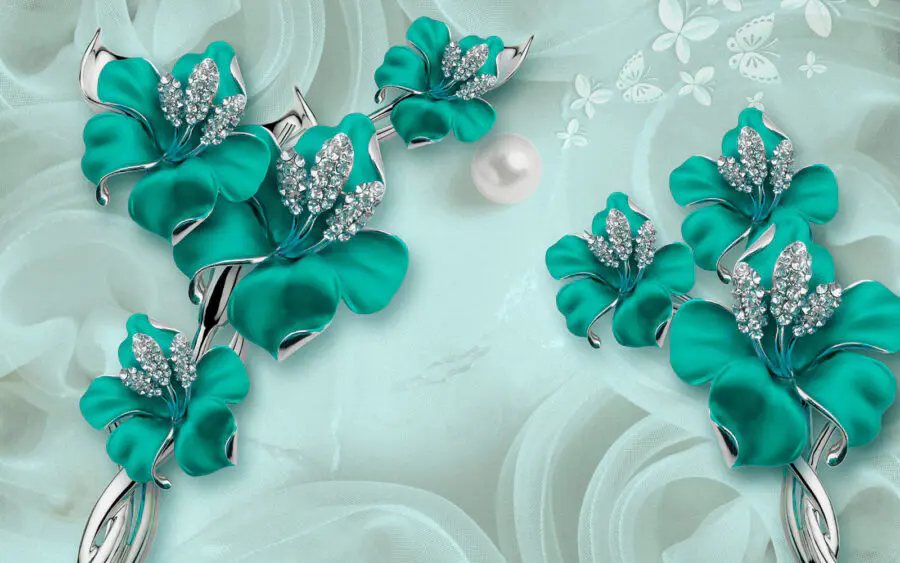 Ταπετσαρίες Κομψό τυρκουάζ αριστούργημα με φλοράλ σχεδιασμό
