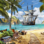Ταπετσαρίες Πειρατικό πλοίο σε παραλία