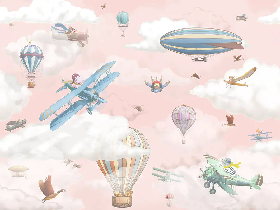 Ταπετσαρίες Ταπετσαρία με αεροπλάνα και αερόστατα θερμού αέρα
