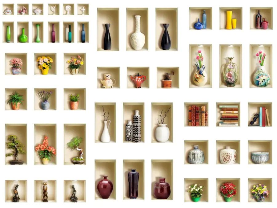 Ταπετσαρίες Τοίχος με ράφια γεμάτα βάζα και λουλούδια