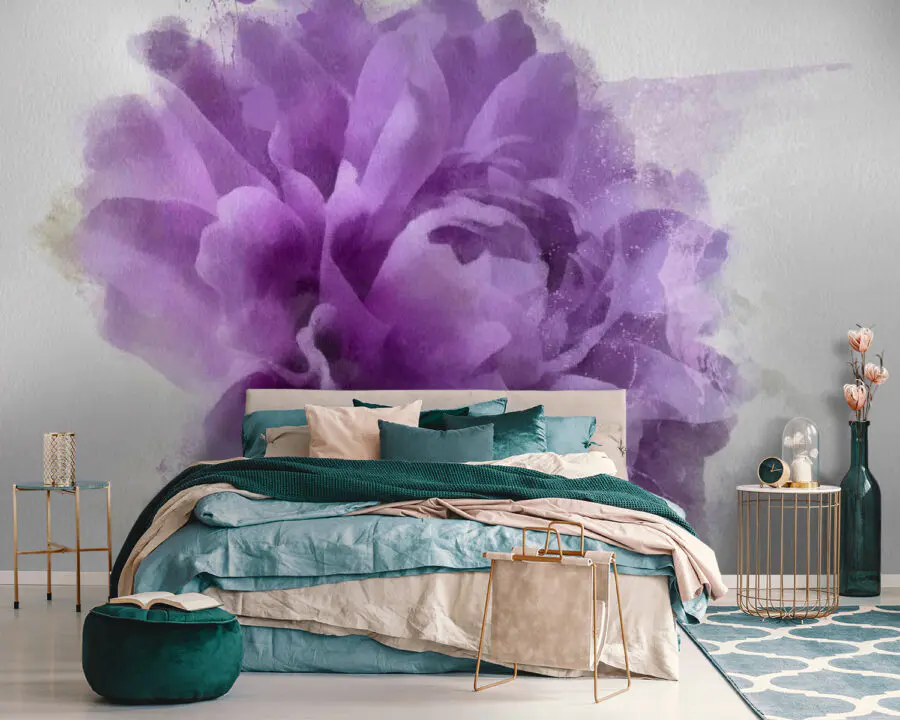 Ταπετσαρίες Μωβ λουλούδι με πιτσιλιές χρώματος