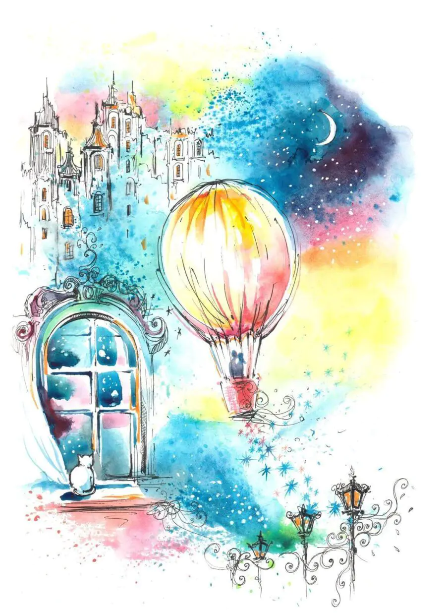 14.36 €7.90 €Ταπετσαρίες Ακουαρέλα εικονογράφηση ενός ελικοπτέρου και αερόστατα θερμού αέρα