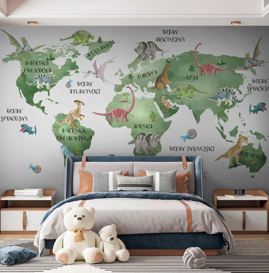Ταπετσαρίες Χάρτης του κόσμου με δεινόσαυρους