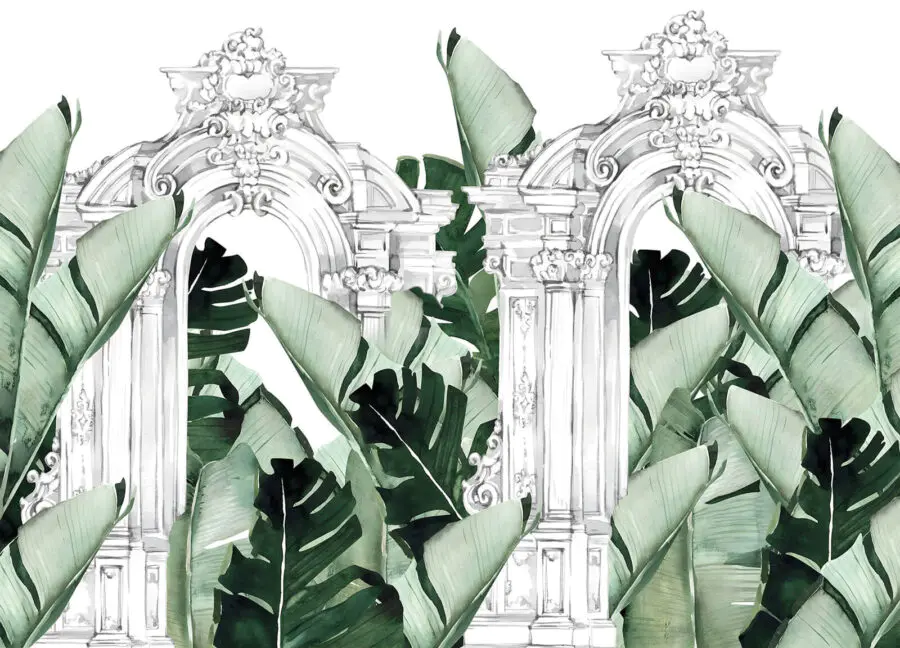 Ταπετσαρίες Λευκή αψίδα με πράσινα φύλλα