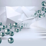 Ταπετσαρίες Λευκό δωμάτιο με λευκούς τοίχους και λευκές στήλες και πράσινες μπάλες