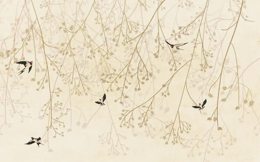 Ταπετσαρίες Πουλιά που πετούν στα κλαδιά ενός δέντρου