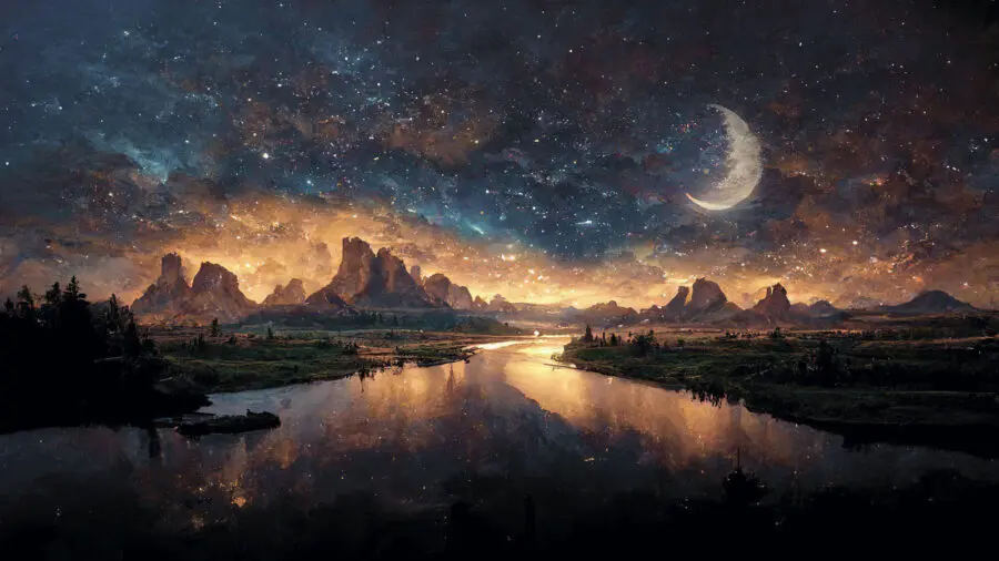 Ταπετσαρίες Ποτάμι με φεγγάρι στον ουρανό
