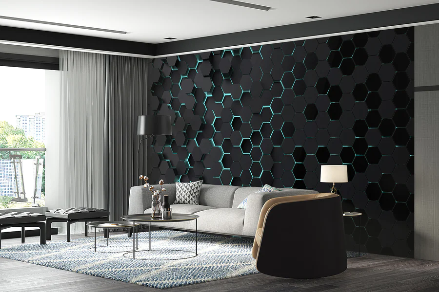Ταπετσαρίες Μαύρα εξάγωνα με μπλε φώτα