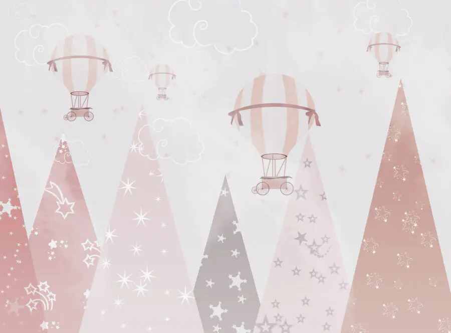 Ταπετσαρίες Ροζ και λευκά αερόστατα θερμού αέρα