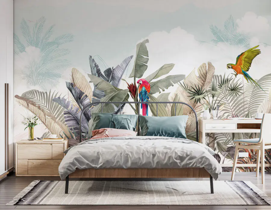 Ταπετσαρίες Ταπετσαρία με τροπικά φυτά και πουλιά