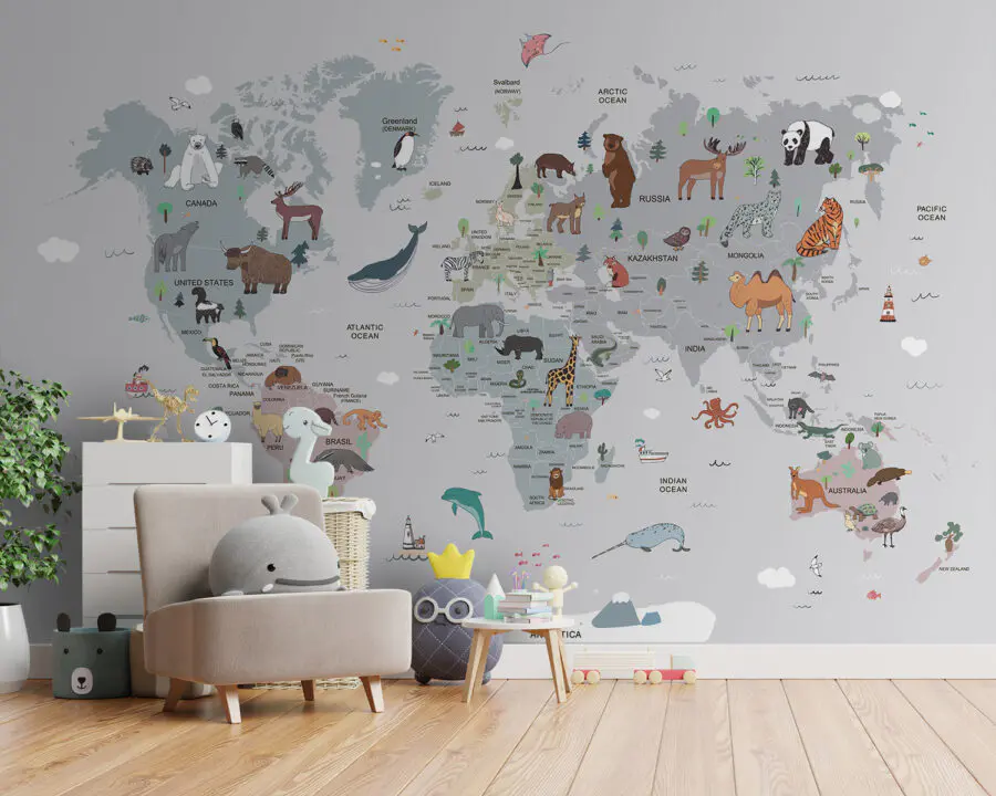 15.15 €8.33 €Ταπετσαρίες Χάρτης του κόσμου με ζώα και πουλιά