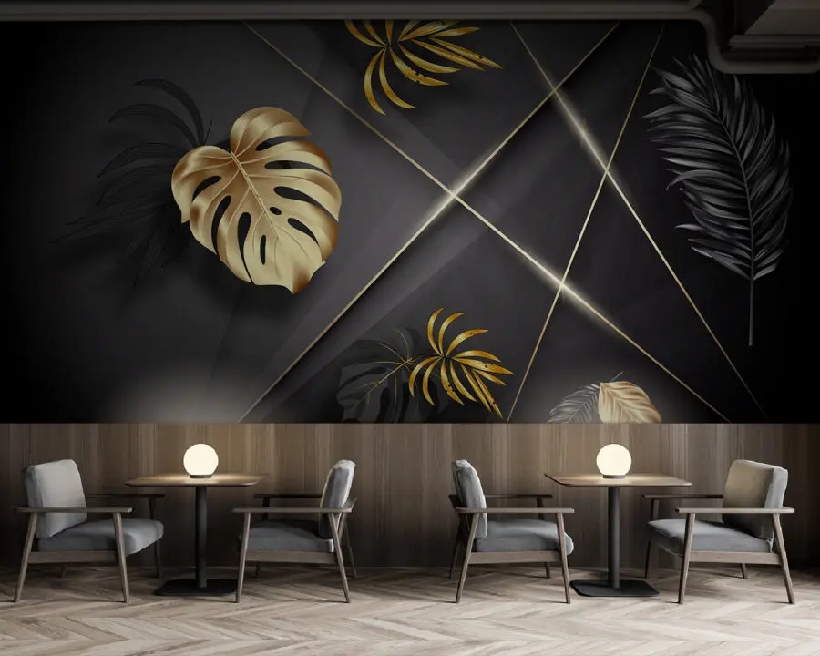 Ταπετσαρίες Κομψά μεταλλικά φύλλα σε σκούρο φόντο