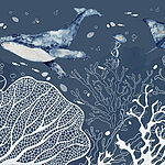 Ταπετσαρίες Μια φάλαινα και σαλάχια που κολυμπούν στον ωκεανό