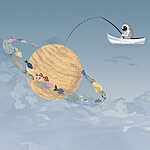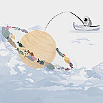 Ταπετσαρίες Γελοιογραφία ενός άνδρα που ψαρεύει σε μια βάρκα στον ουρανό