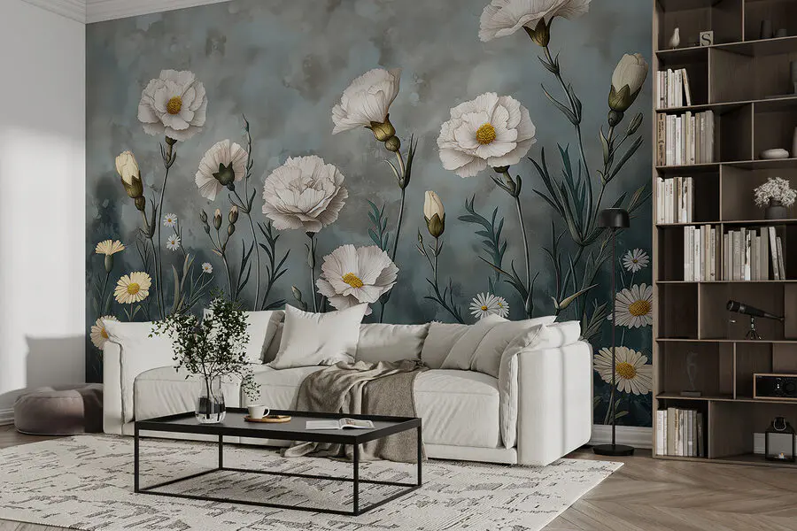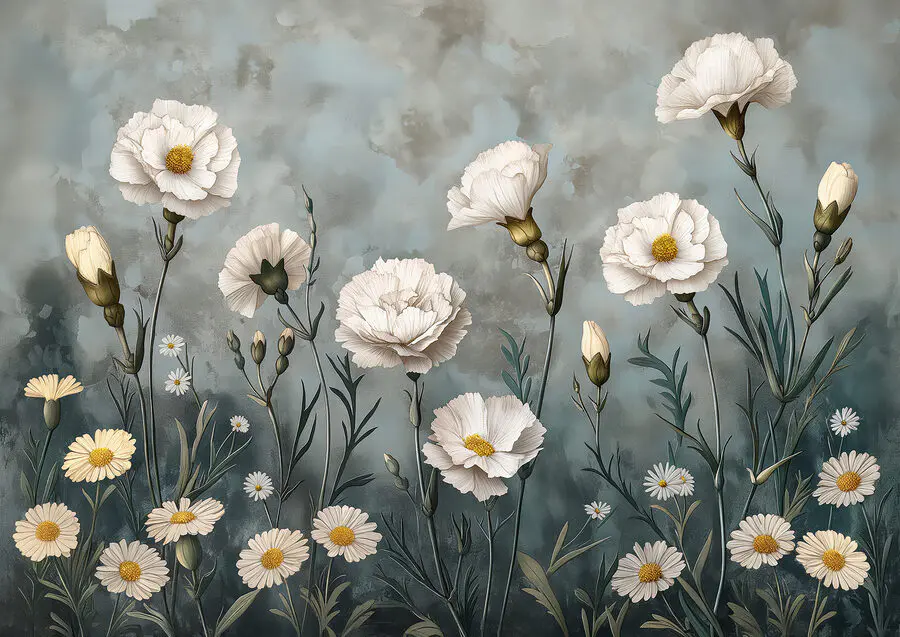 Ταπετσαρίες Ζωγραφική λευκών λουλουδιών