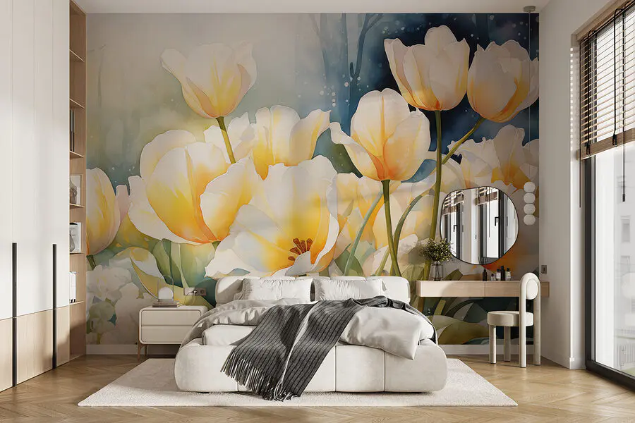Ταπετσαρίες Ζωγραφική λευκών λουλουδιών